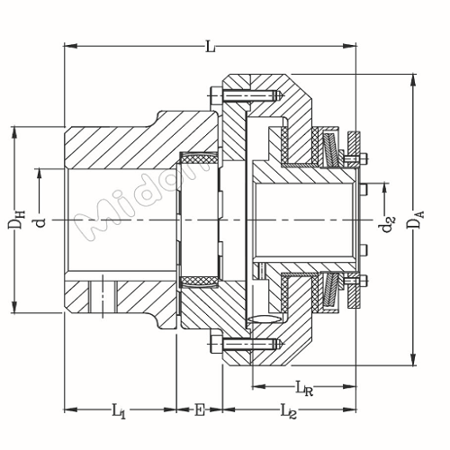 | 型號 TYPE | 力矩 N.M | 最高轉(zhuǎn)速 r/min | 外徑 DA | 轂徑 DH | 聯(lián)軸器孔 d1 | 限制器孔 d2 | 總長 L | L1 | L2 | L3 | 鑼絲 screw |