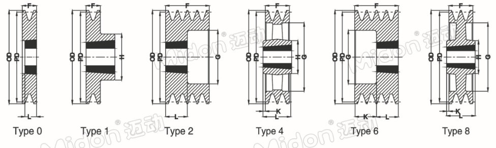 | PartNo:/PDGV 型號(hào)/節(jié)徑-槽數(shù) | OD 外徑 | Bush錐套 | MaxBore最大孔 | Type 圖列 | F 輪寬 | G 緣徑 | K - | L 轂厚 | H 轂徑 | Wt.LessBush重量 |