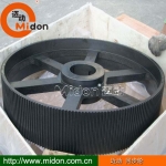 同步輪是由一條內(nèi)周表面設(shè)有等間距齒的環(huán)形皮帶和具有相應(yīng)齒的帶輪所組成,運(yùn)行時(shí),帶齒與帶輪的齒槽相嚙合傳遞運(yùn)動(dòng)和動(dòng)力,它是綜合了皮帶傳動(dòng)、鏈傳動(dòng)齒輪傳動(dòng)各自優(yōu)點(diǎn)的新型帶傳動(dòng)。