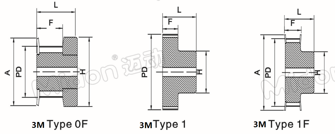 | 帶寬Belt= 6mm 輪寬F=7.2、9.8或10.3MM | 帶寬Belt= 6mm F=10.2、12.8或13MM | 帶寬Belt=15mm F=17、19.5、20MM | ||||||||||||||||||