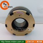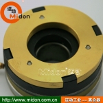 邁動工業(yè)牙嵌式電磁離合器----借助通入磁軛內(nèi)勵磁線圈中的電流產(chǎn)生磁力吸引銜鐵,從而使與磁軛和銜鐵相連的兩上牙形齒爪接合傳遞轉(zhuǎn)矩。牙嵌式電磁離合器可分為線圈旋轉(zhuǎn)(有滑環(huán)式)和線圈靜止(無滑環(huán)式)兩種,前一種的勵磁線圈回轉(zhuǎn),電流經(jīng)滑環(huán)引入,后一種勵磁線圈靜止,電流直接通入線圈。為了使離、合容易,一般采用三角形牙或梯形牙。