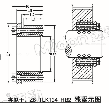 邁動LOCK8脹緊套類似于:Z6 TLK134 HB2 。邁動 脹套拆卸方便,且具有良好的互換性。由于脹套能把較大配合間隙的軸轂結(jié)合起來,拆卸時將螺栓擰松,即可使被聯(lián)結(jié) 件容易拆。脹緊時,接觸面緊密貼合不易銹蝕,也便于拆開。