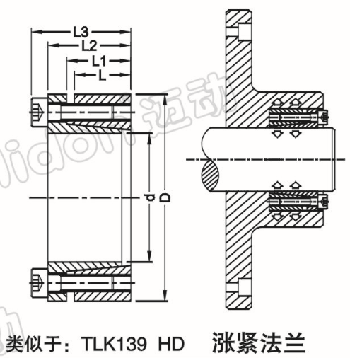 邁動(dòng)LOCK11脹緊套類似于:TLK139 HD,邁動(dòng)脹緊套在超載時(shí),將失去聯(lián)結(jié)作用,可以保護(hù)設(shè)備不受損害, 還可以承受多重負(fù)載,其結(jié)構(gòu)可以做成多種式樣。根據(jù)安裝負(fù)載大小,還可以多個(gè)脹套串聯(lián)使用。